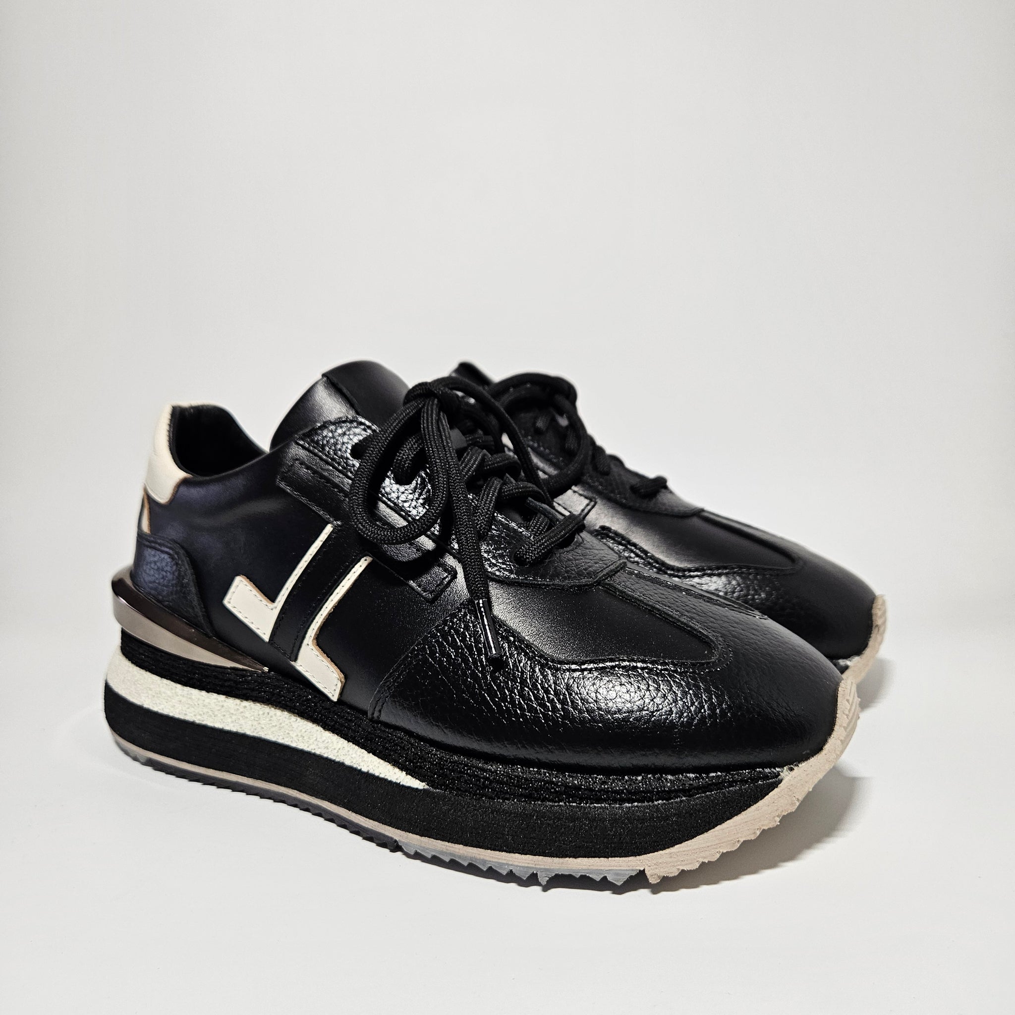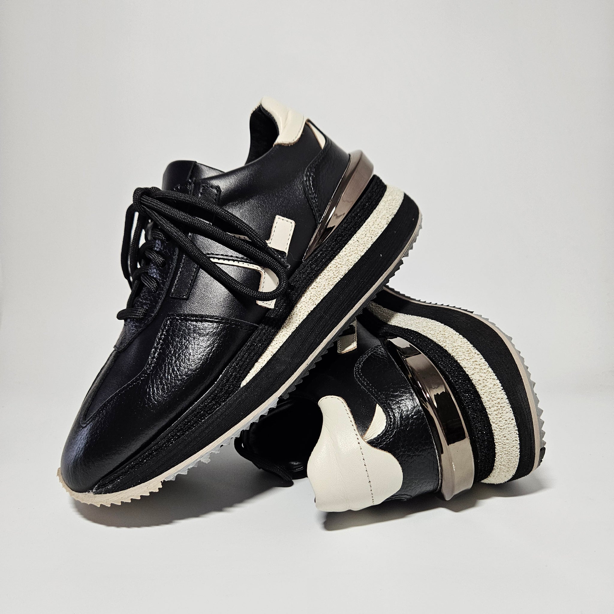 Išskirtiniai savo dizainu bateliai. Akcento batams suteikia išskirtinės detalės. Tinka vidutinio pločio pėdai. Rišasi batų raišteliu. Natūrali oda išorėje ir viduje. Pastorintas padas, kurio aukštis 3,5 cm., pakulnės 5 cm.
