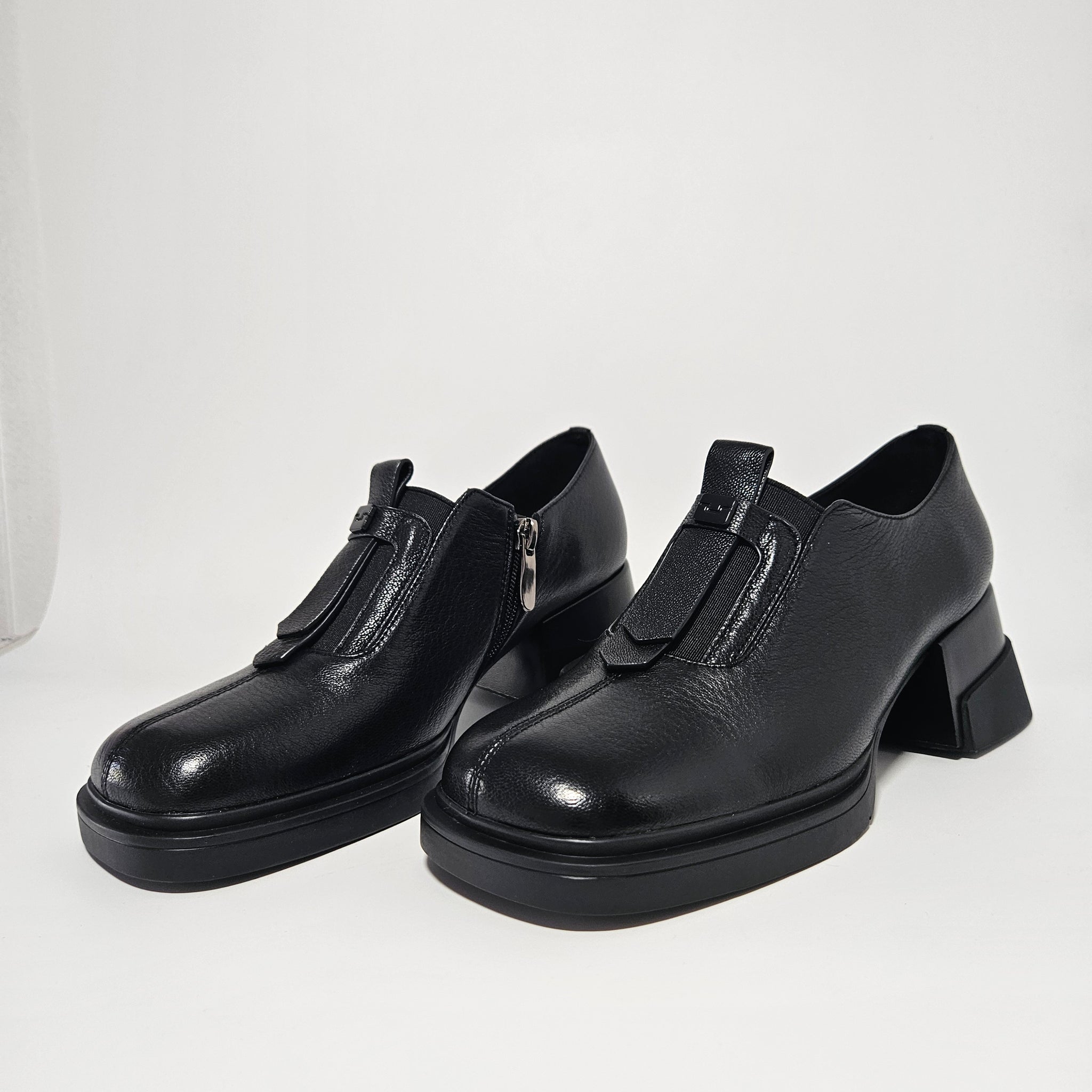 Stabilus kulnas, truputį pastorintas padas, visa tai aktualu rudenio orams. Tiktų vidutinio pločio pėdai. Vidinėje pusėje užtrauktukas. Minkštas natūralios odos vidpadis. Pado aukštis 1,5 cm., kulno 5,5 cm.