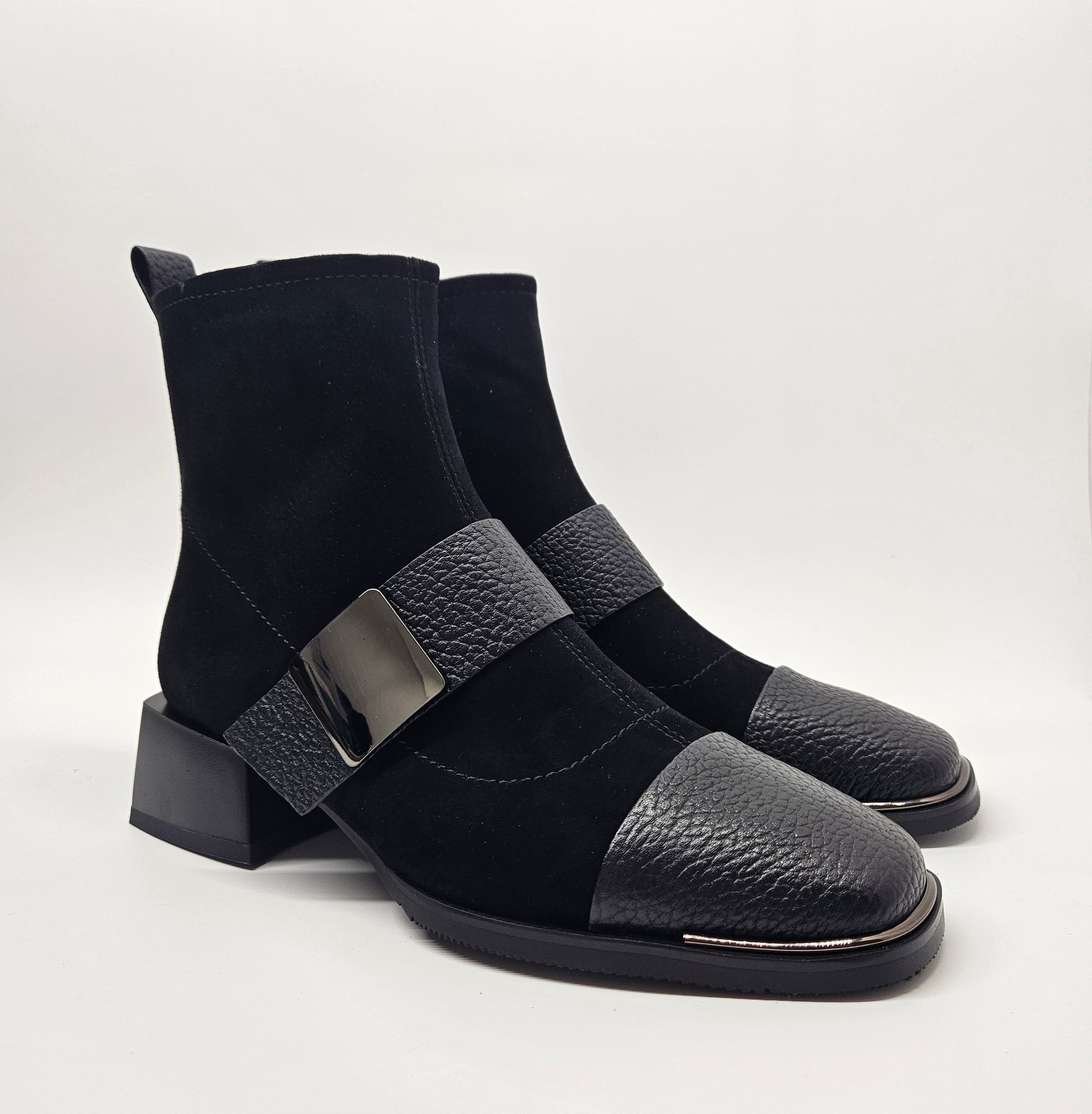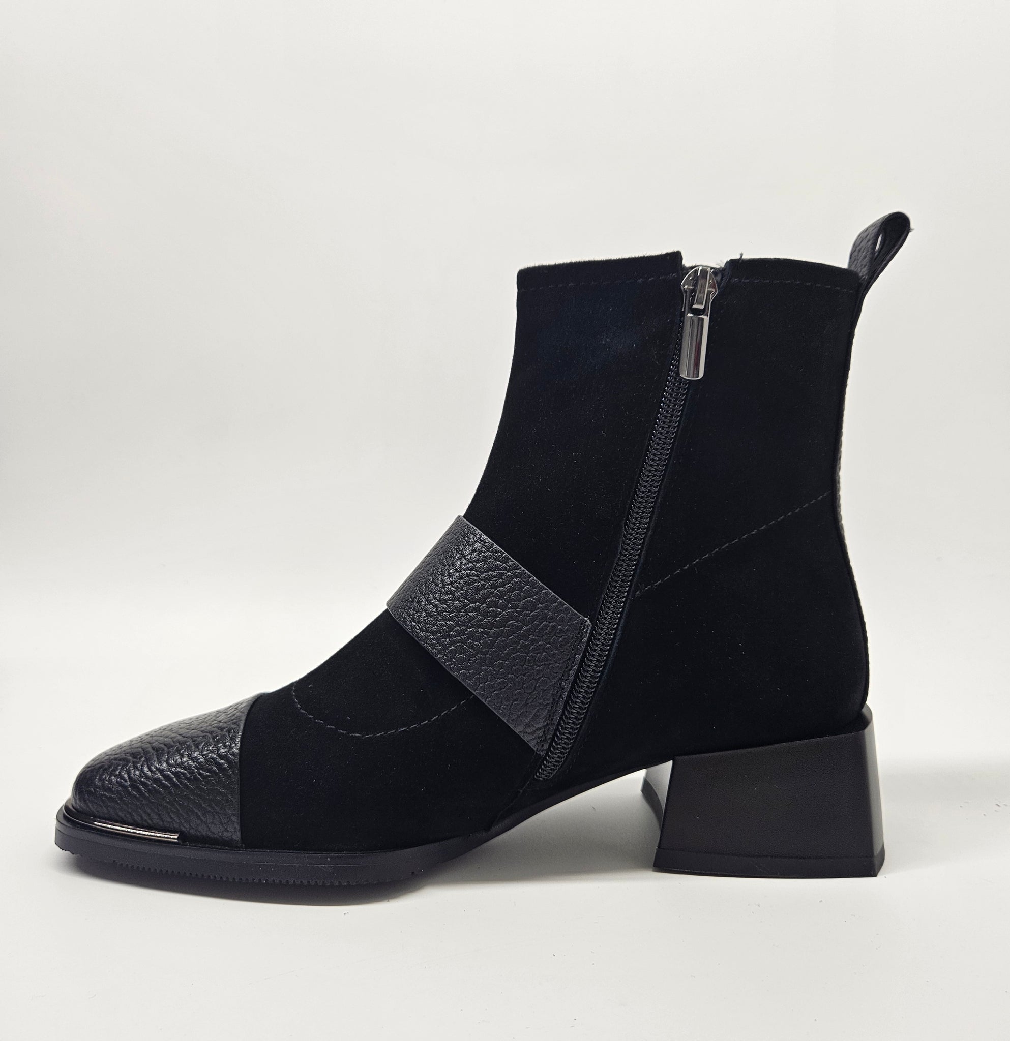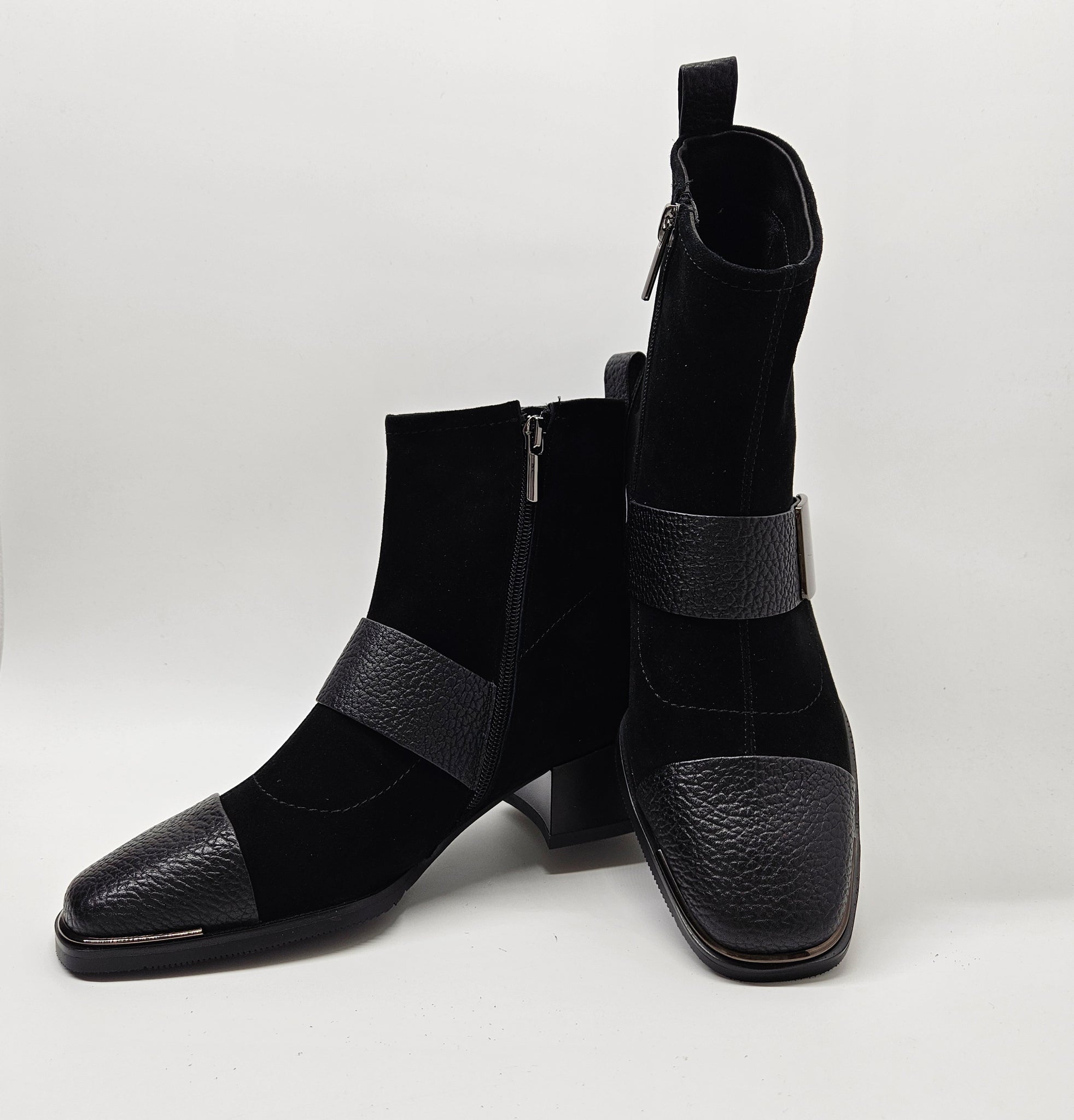 Elegancija ir patogumas su šiais bateliais. Čia derinį randa dvi skirtingos odos rūšys ir keletas detalių. Minkštutė oda viršutinėje batelių dalyje.  Vidinėje pusėje - užtrauktukas. Patogūs avėjimui ir tinkantys vidutinio pločio pėdai. Aulinukų viduje nedidelis, švelnus pašiltinimas. Minkštas vidpadis batų viduje. Stabilus kulnas, kurio aukštis 4,7 cm., pado 1 cm., auliuko 14 cm.