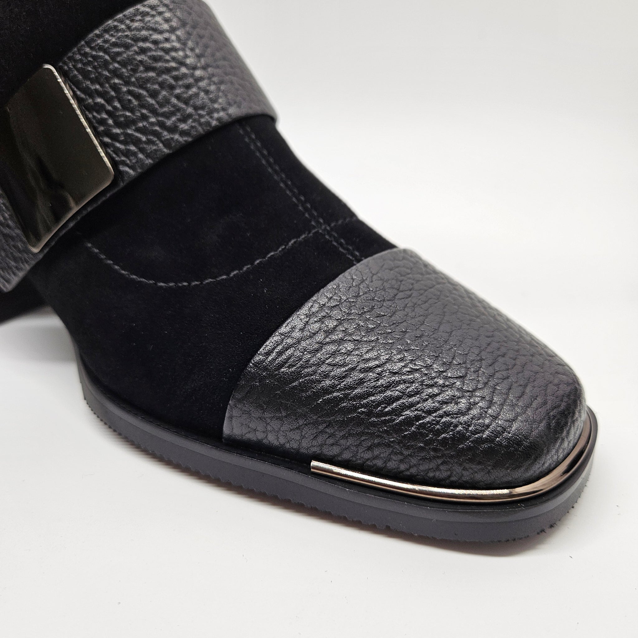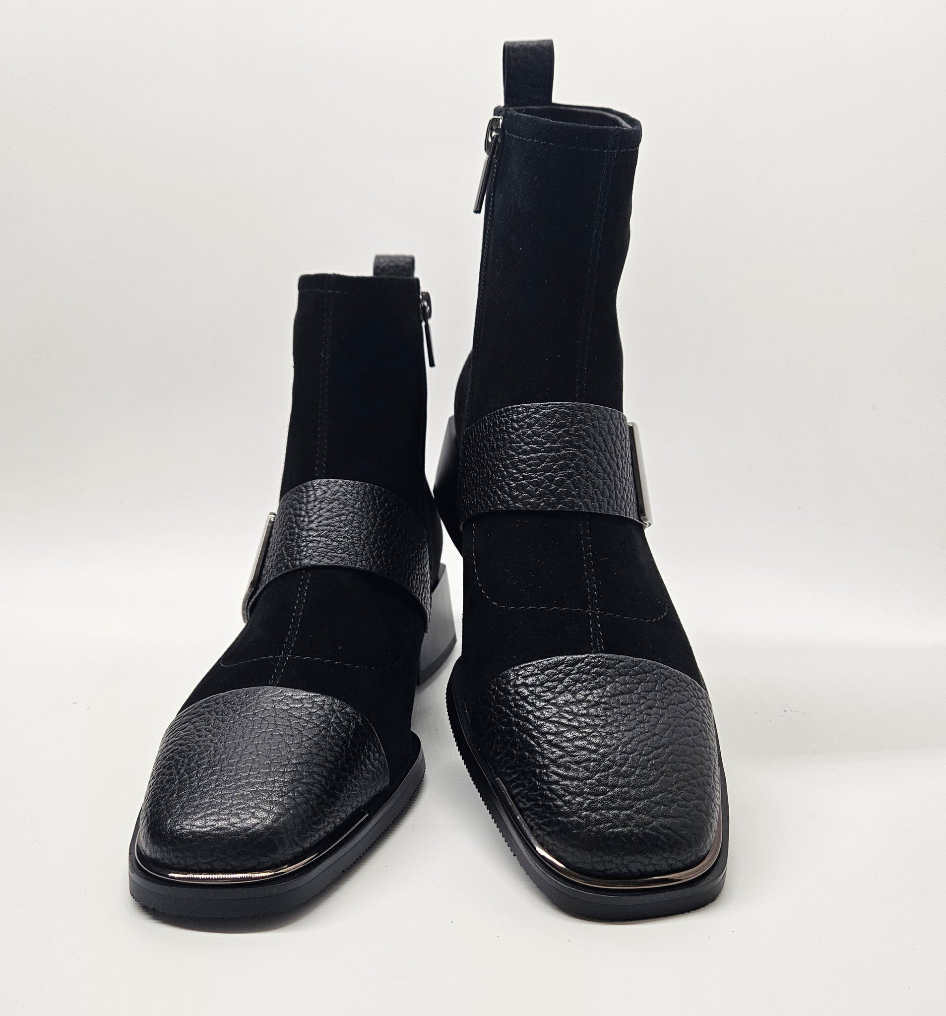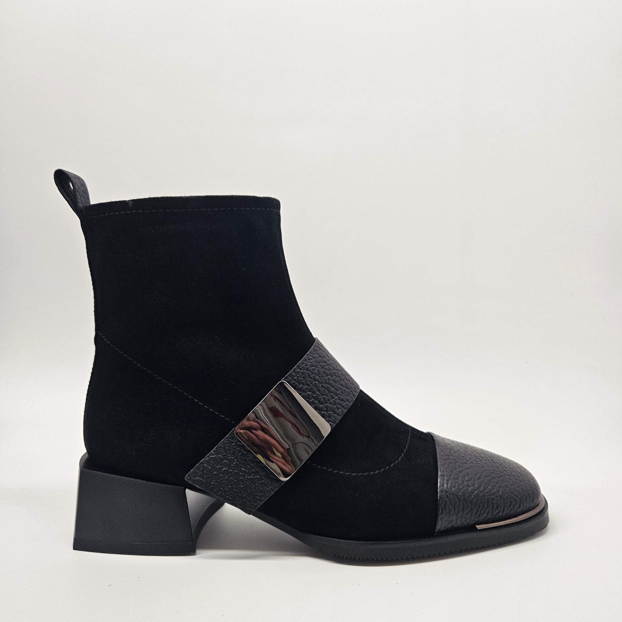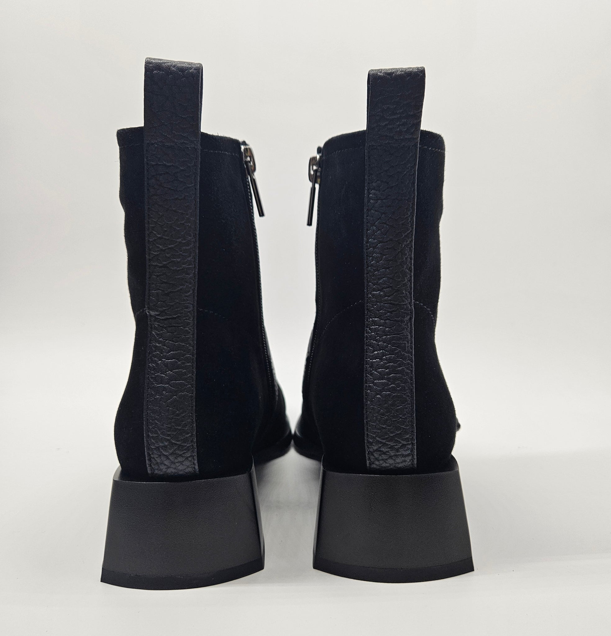 Elegancija ir patogumas su šiais bateliais. Čia derinį randa dvi skirtingos odos rūšys ir keletas detalių. Minkštutė oda viršutinėje batelių dalyje.  Vidinėje pusėje - užtrauktukas. Patogūs avėjimui ir tinkantys vidutinio pločio pėdai. Aulinukų viduje nedidelis, švelnus pašiltinimas. Minkštas vidpadis batų viduje. Stabilus kulnas, kurio aukštis 4,7 cm., pado 1 cm., auliuko 14 cm.