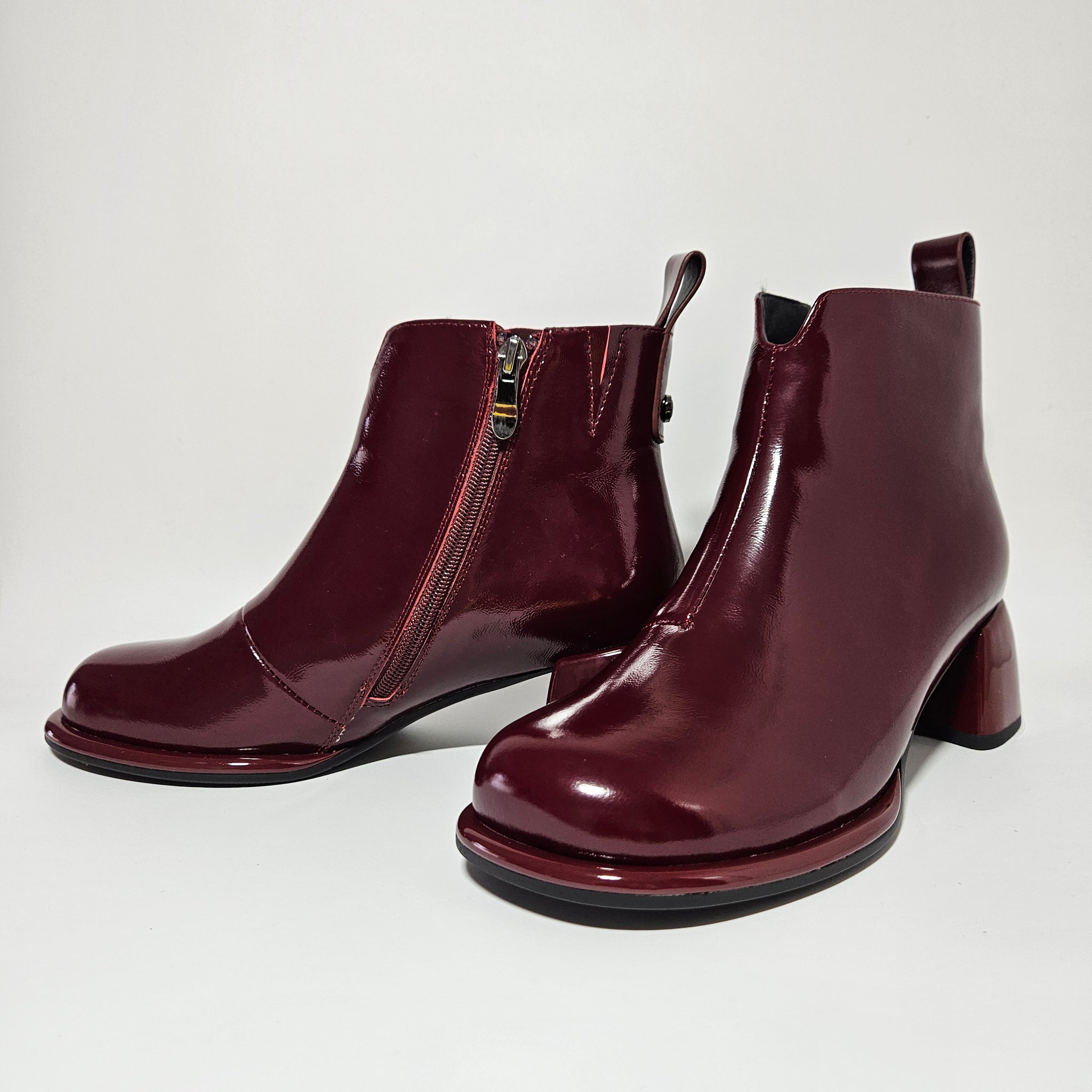 Stilingi, turintys užapvalėjantį priekį batai. Minkšta viršutinė dalis. Patogūs avėjimui ir tinkantys vidutinio pločio ar truputį platesnei pėdai. Vidinėje pusėje - užtrauktukas. Aulinukų viduje nedidelis, švelnus pašiltinimas. Minkštas vidpadis batų viduje. Stabilus kulnas, kurio aukštis 5 cm., pado 1 cm., auliuko 11 cm.