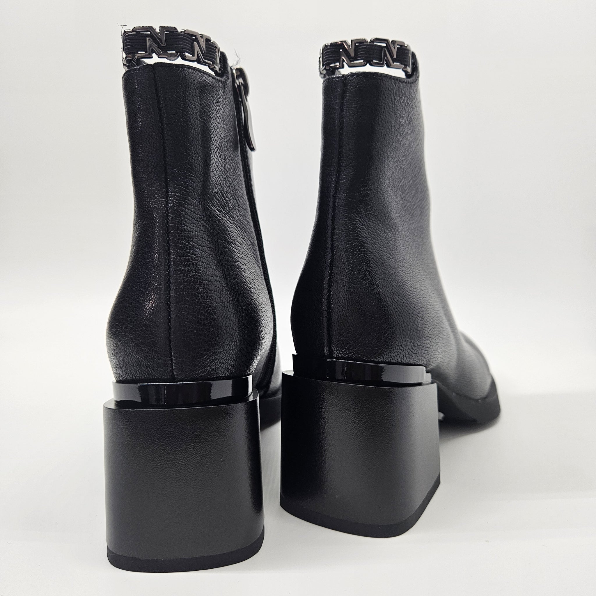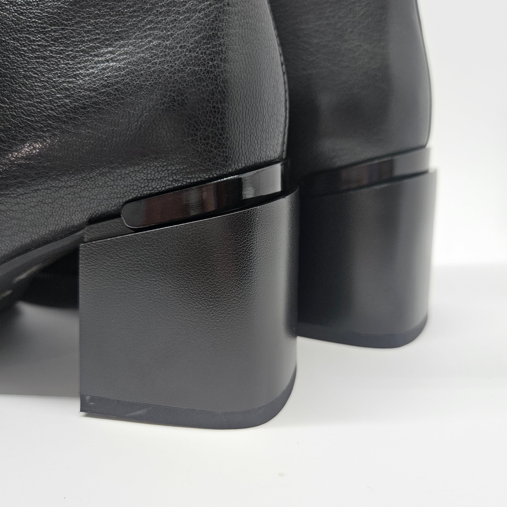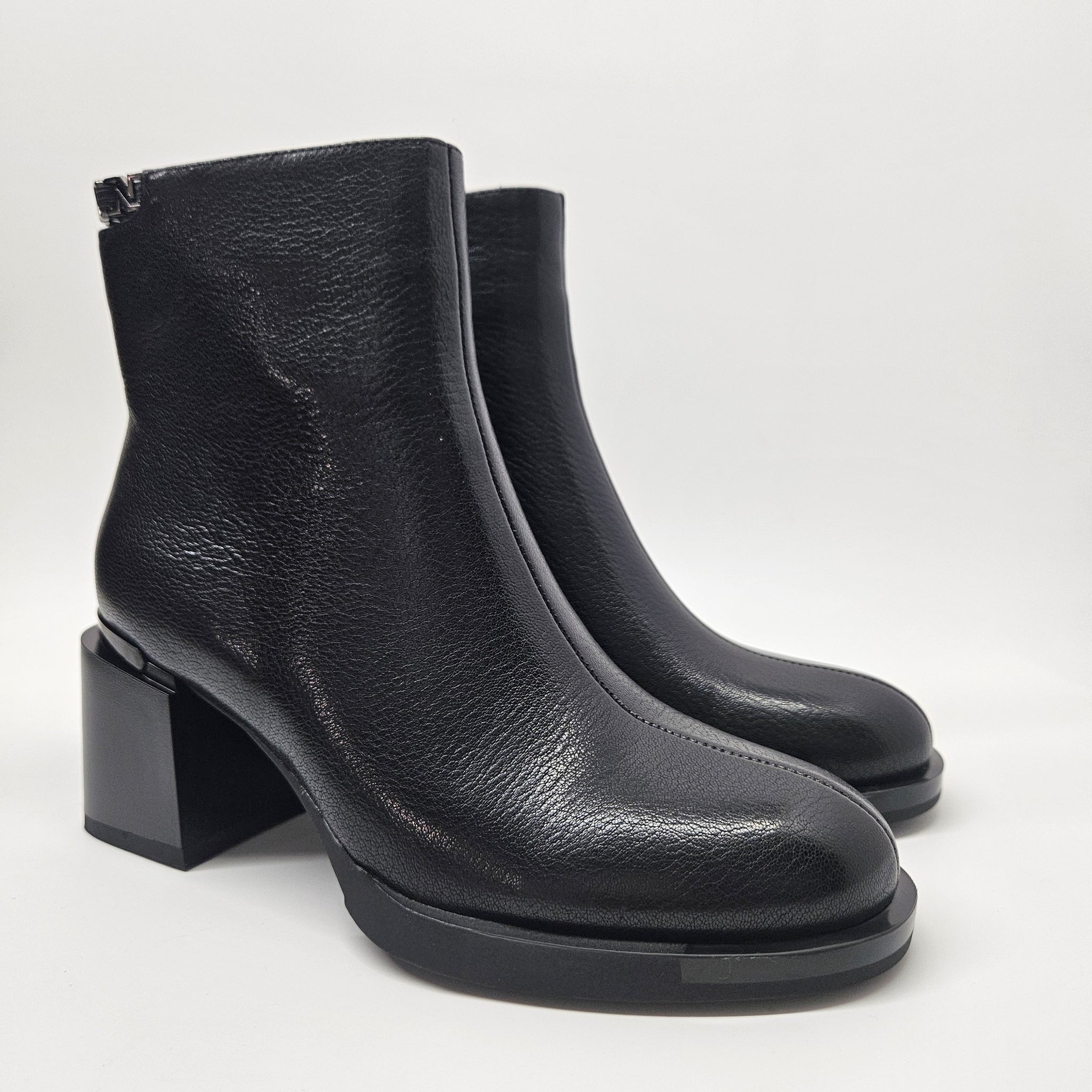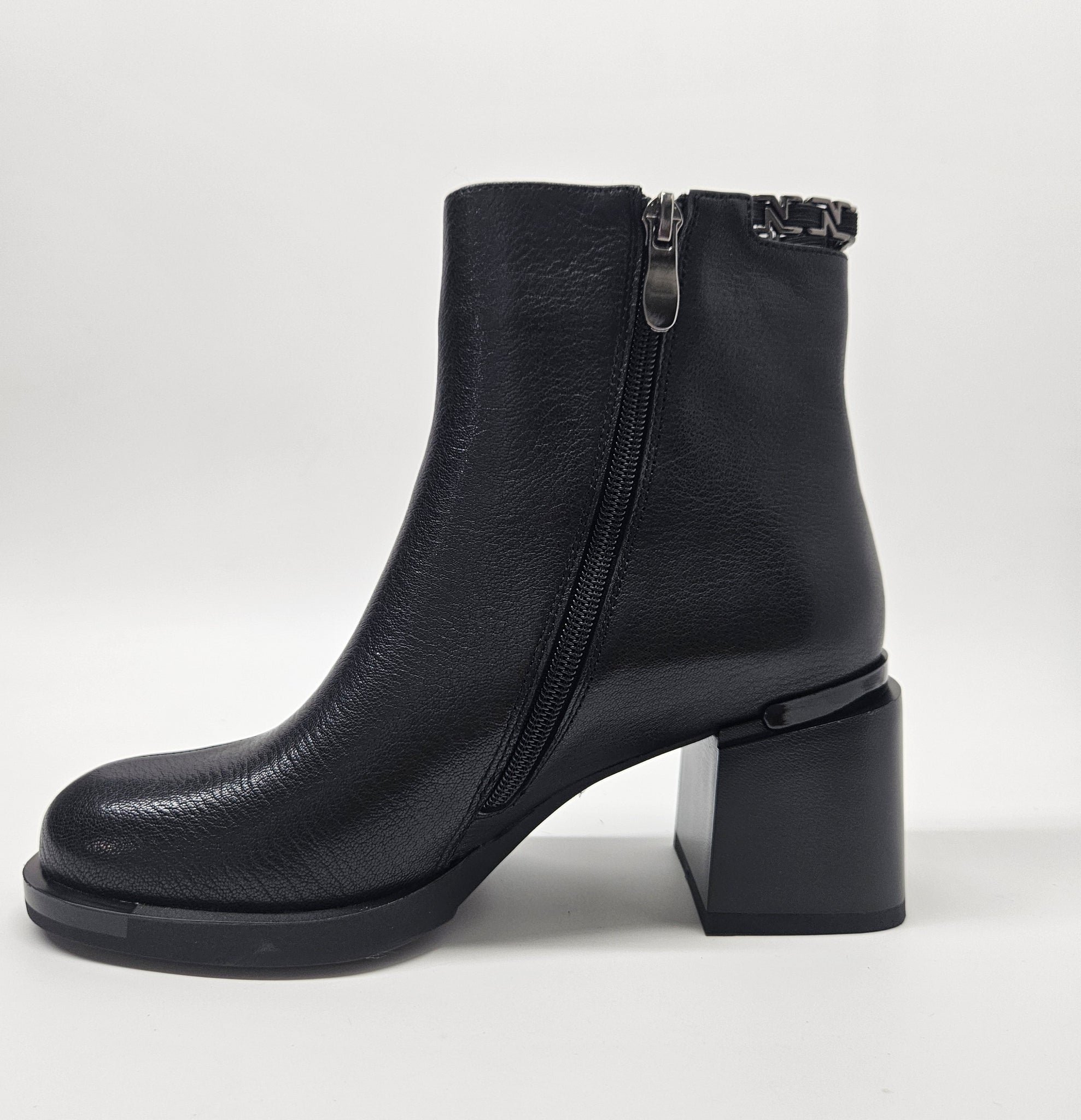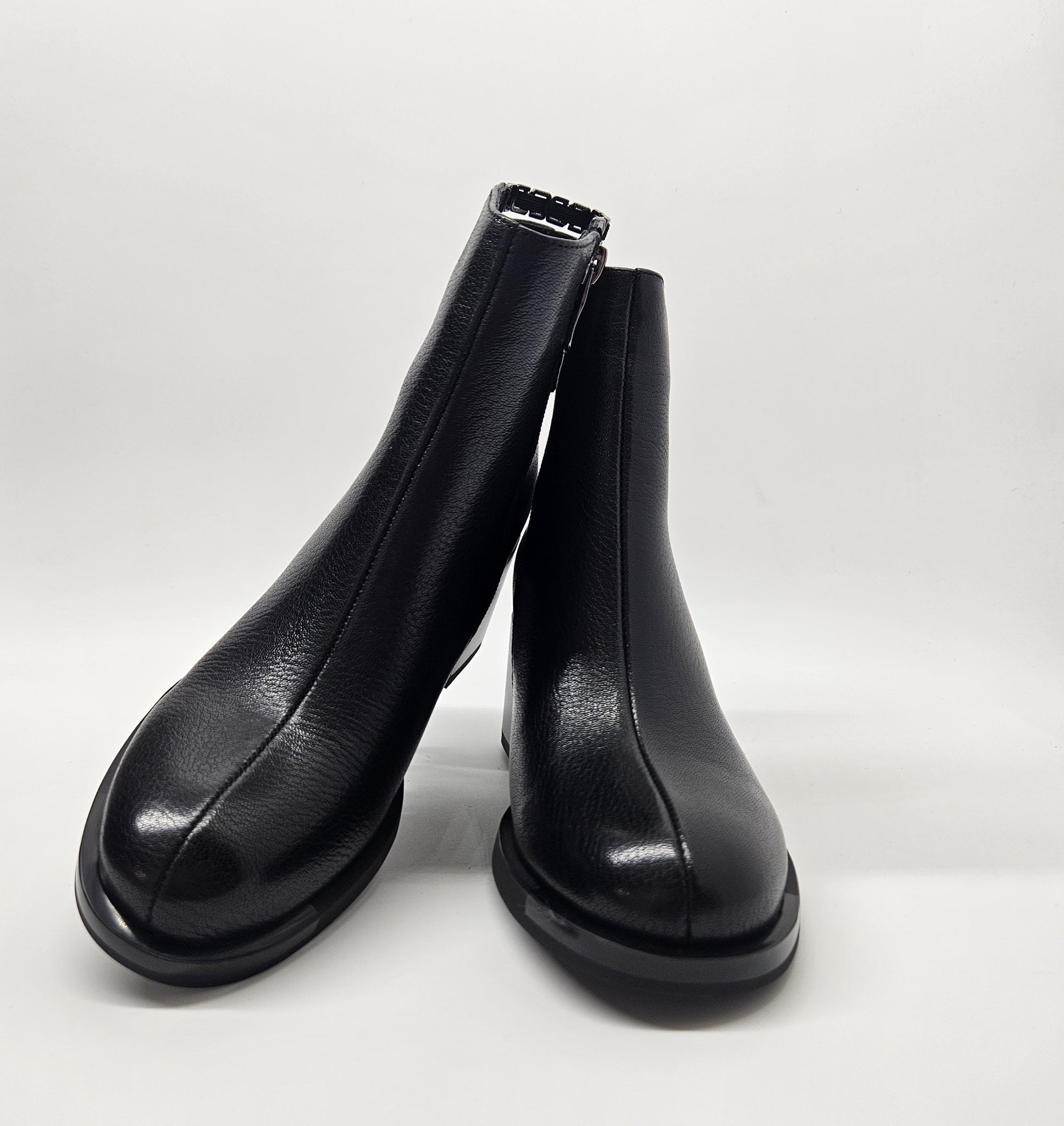 Klasika ir patogumas. Minkšta, juodos spalvos oda. Batai turi stabilų 7 cm. kulną. Patogūs avėjimui ir tinka siauresnio/vidutinio pločio pėdai su vidutine keltimi. Vidinėje pusėje - užtrauktukas. Aulinukų viduje nedidelis, švelnus pašiltinimas. Minkštas vidpadis batų viduje. Pado aukštis 1 cm., auliuko 12,5 cm.