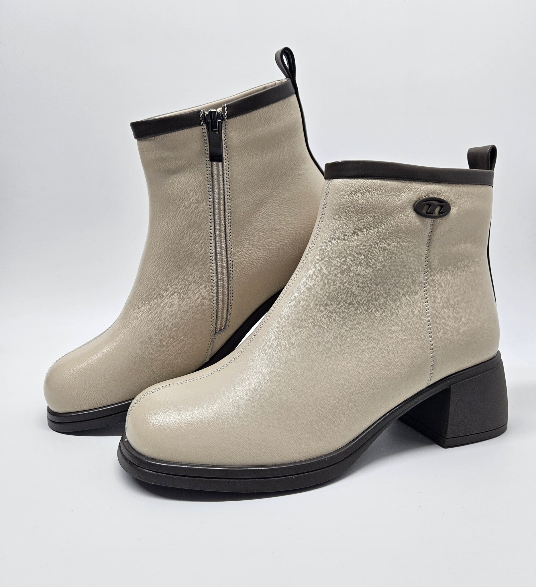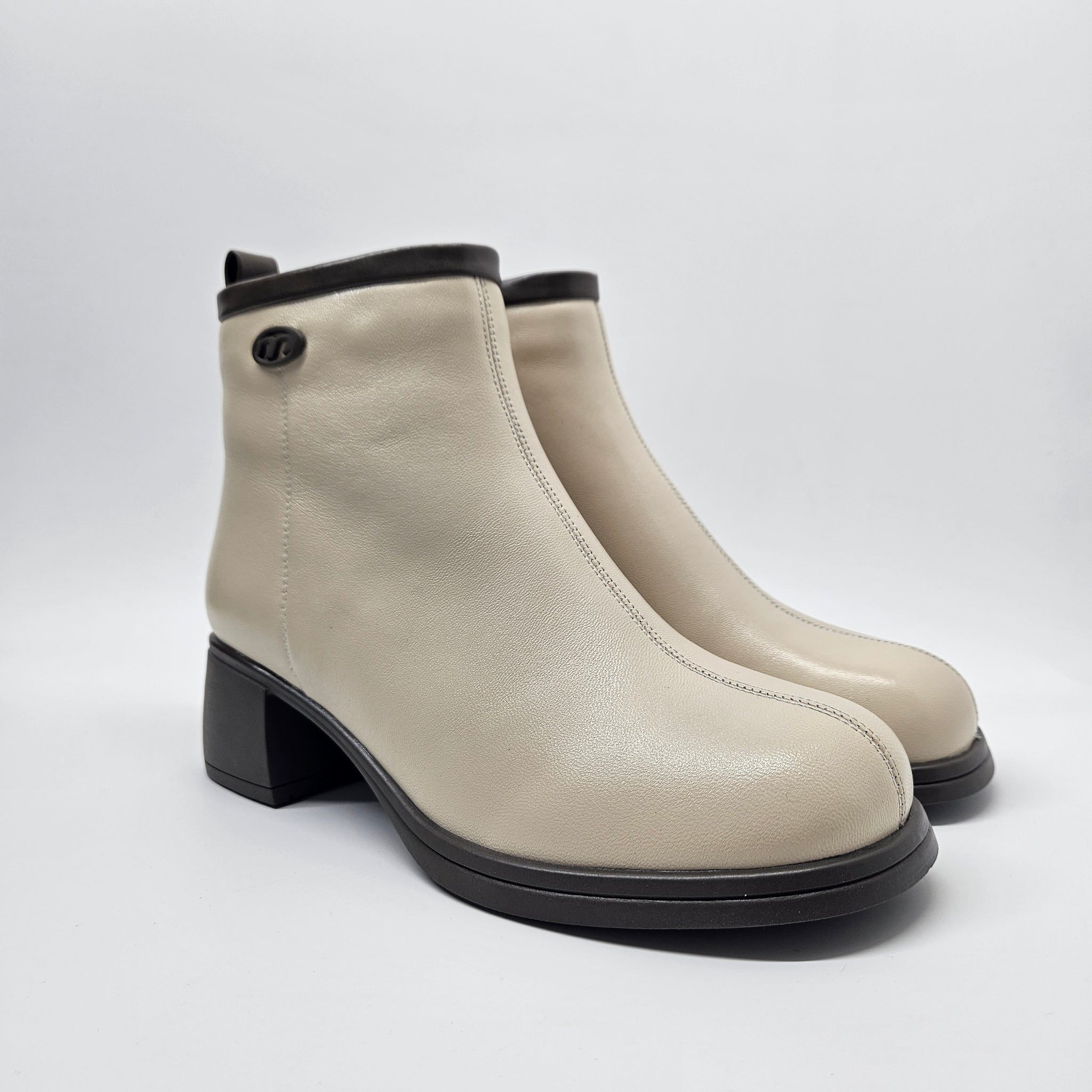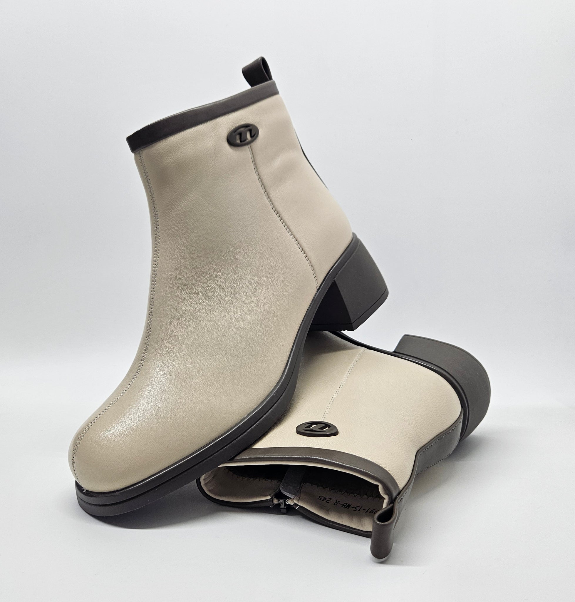 Komfortiški, minkšto, lankstaus pado batai. Turi stabilią pakulnę ir bukesnį priekį. Patogūs avėjimui ir tinka platesnei pėdai. Vidinėje pusėje - užtrauktukas. Aulinukų viduje nedidelis, švelnus pašiltinimas. Minkštas vidpadis batų viduje. Pado aukštis 1,3 cm., kulno 5,3 cm., auliuko 12 cm. Dydžiai mažinti.