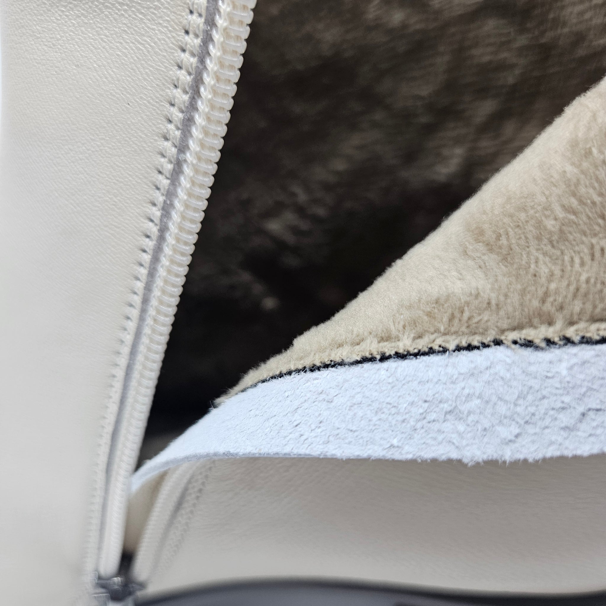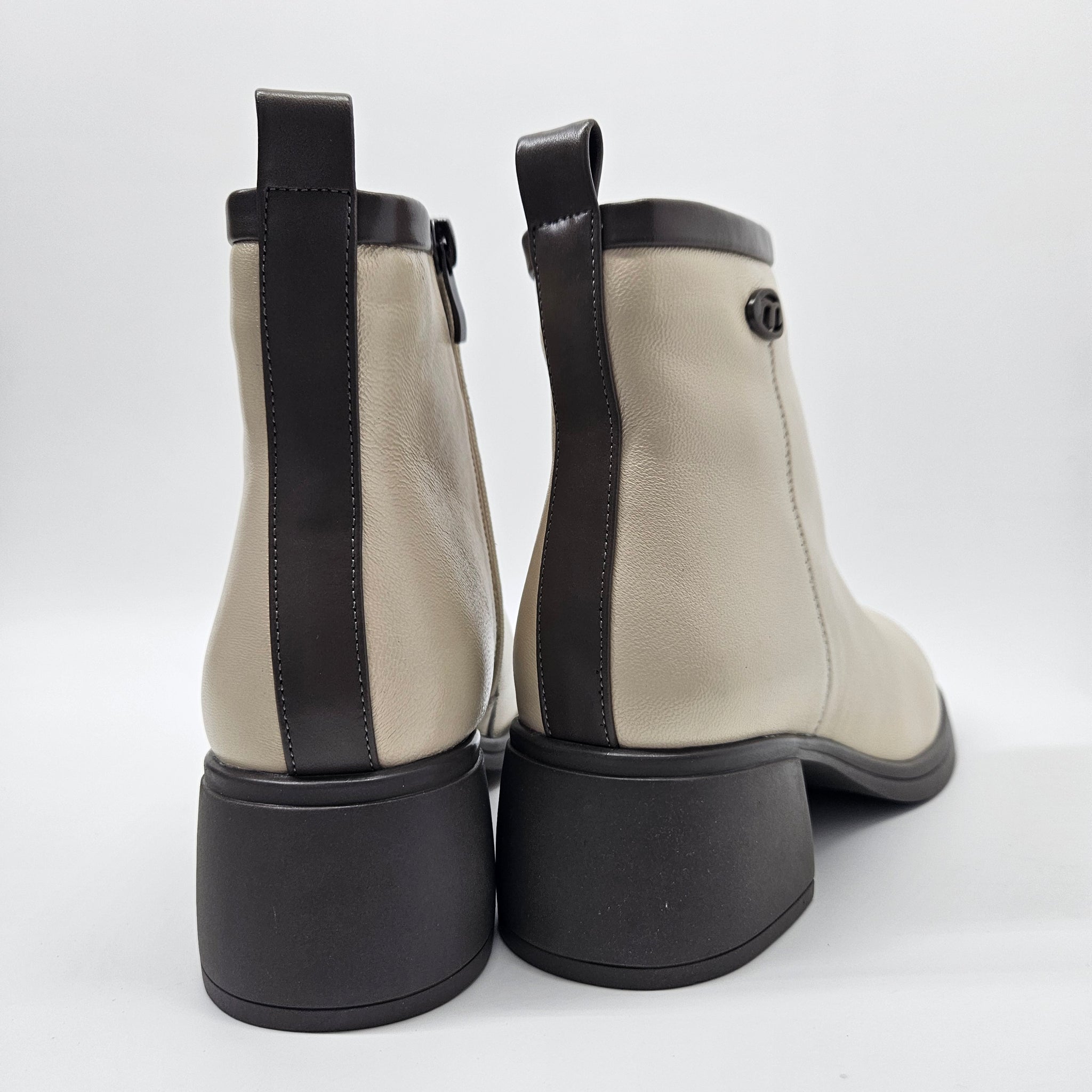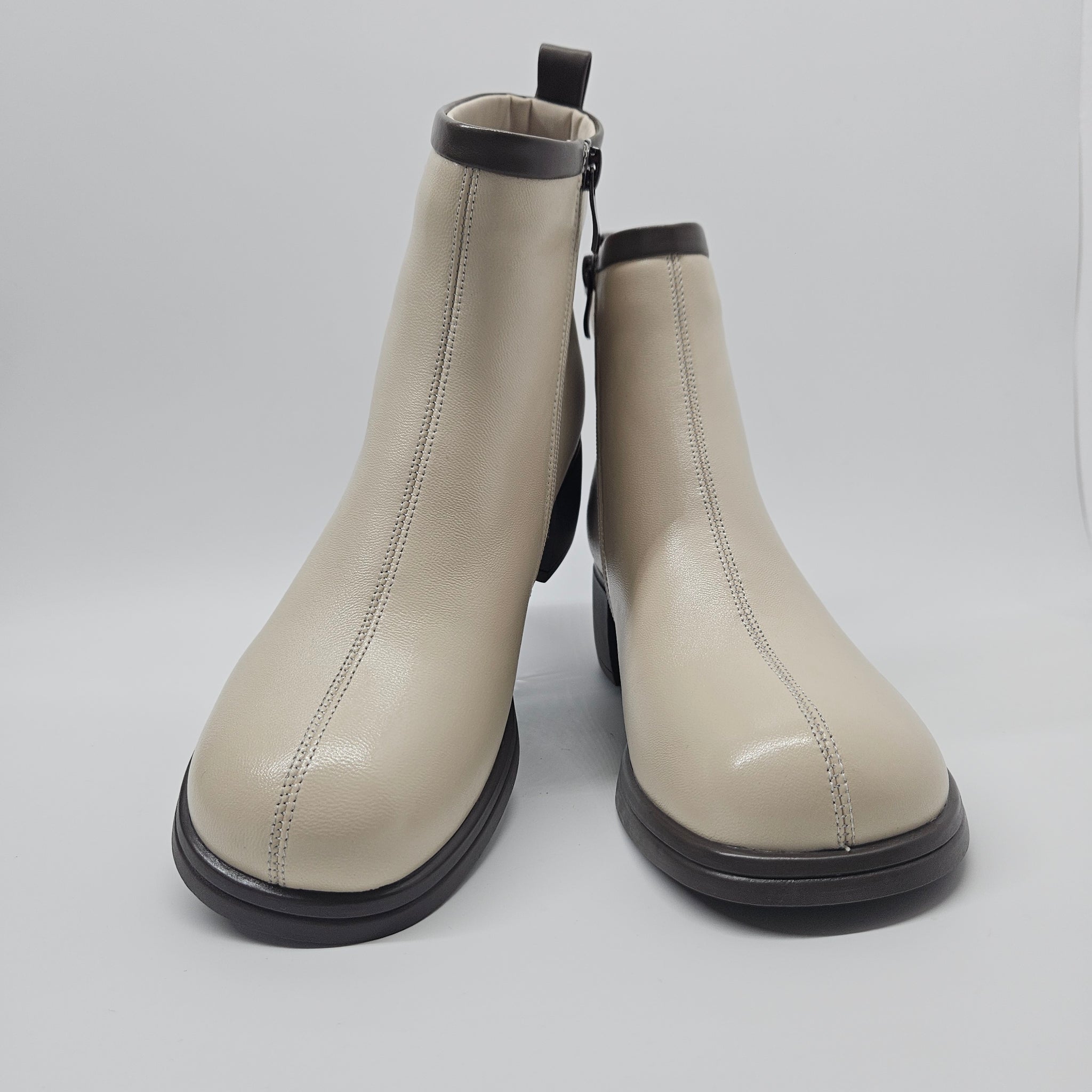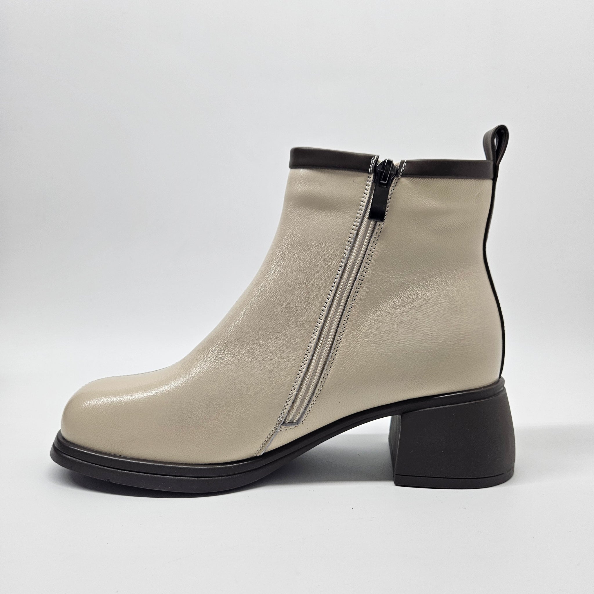Komfortiški, minkšto, lankstaus pado batai. Turi stabilią pakulnę ir bukesnį priekį. Patogūs avėjimui ir tinka platesnei pėdai. Vidinėje pusėje - užtrauktukas. Aulinukų viduje nedidelis, švelnus pašiltinimas. Minkštas vidpadis batų viduje. Pado aukštis 1,3 cm., kulno 5,3 cm., auliuko 12 cm. Dydžiai mažinti.