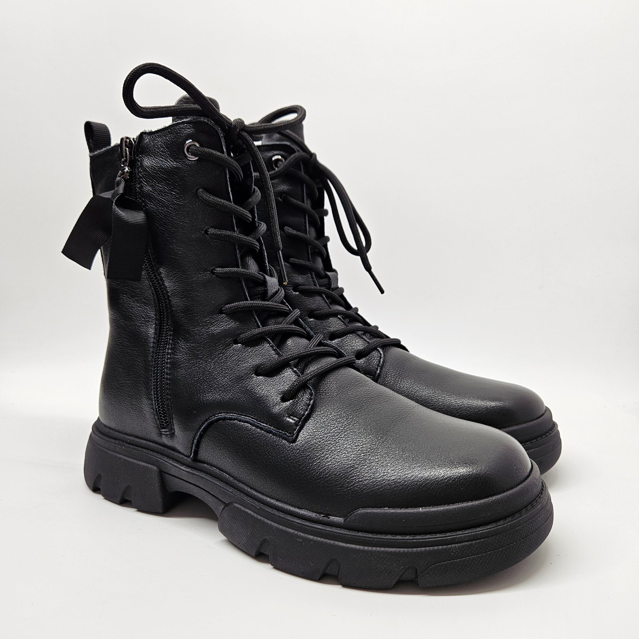 Komfortiški, minkštos odos aulinukai. Tinka platesnei pėdai. Priekyje, batų plotis reguliuojasi raištuku, iš vidaus užtrauktukas. Natūralaus kailiuko pašiltinimas viduje. Padas lankstus, grublėtas, jo aukštis 2,5 cm., kulno 4 cm., aulo aukštis 15,5 cm.