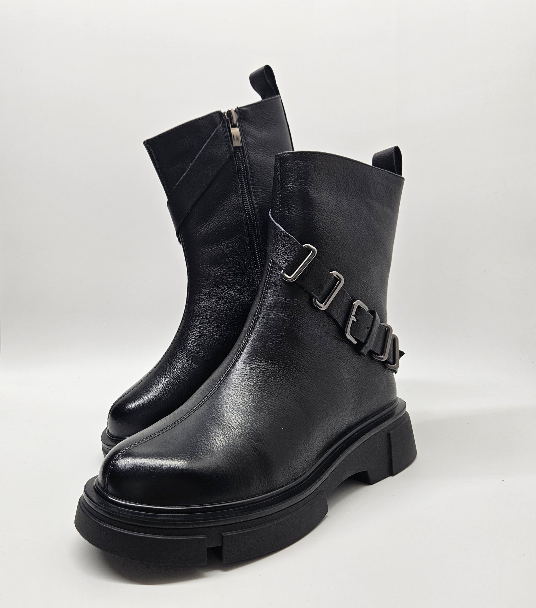 Patogūs, minkštos, natūralios odos aulinukai. Tinka vidutinio pločio ir platesnei pėdai. Vidinėje pusėje Traukiasi užtrauktuku. Aulinukų vidus ir vidpadis su natūralaus kailiuko pašiltinimu. Minkštas vidpadis batų viduje. Lankstus padas, kurio aukštis 2,5 cm., kulno 4,2 cm., aulo aukštis 16,5 cm. Dydžiai mažinti.