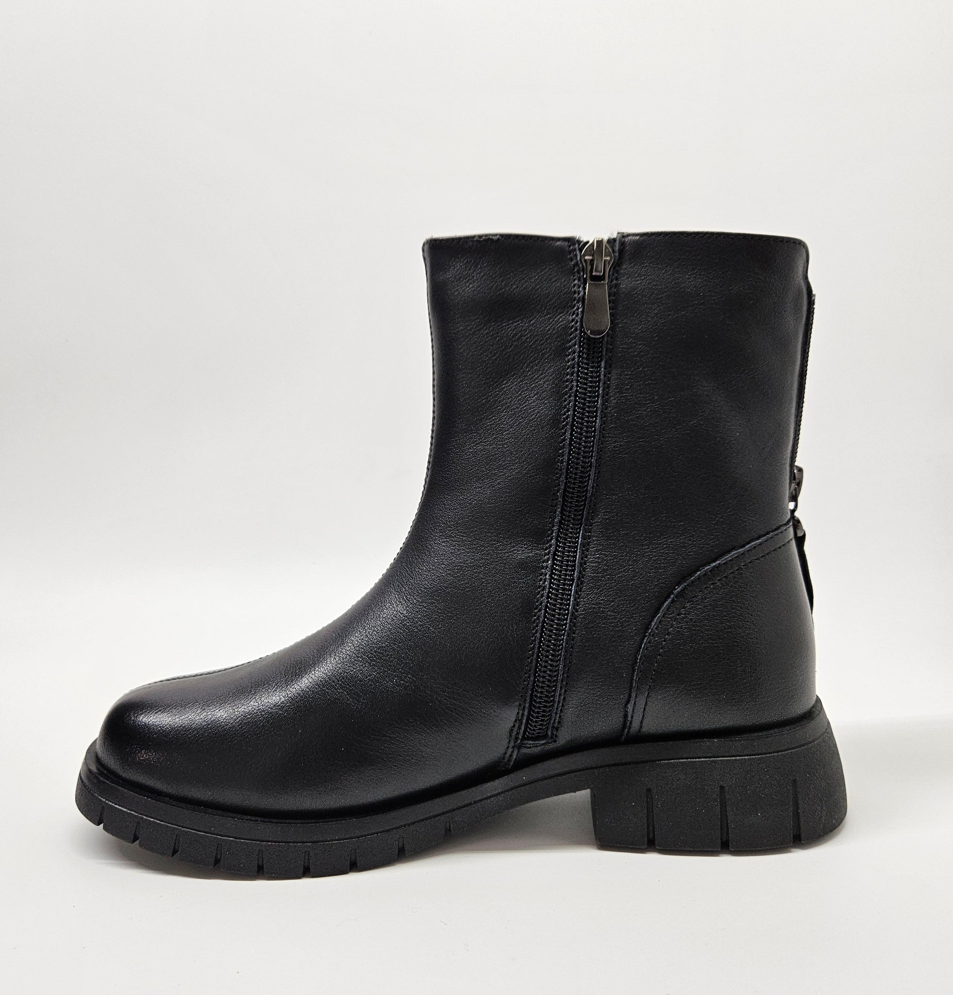 Vienas iš patogesnio modelio aulinukų. Minkštutė oda viršutinėje aulinukų dalyje.  Tinka vidutinio pločio ir platesnei pėdai. Batų vidus ir vidpadis su natūralaus kailiuko pašiltinimu. Vidinėje pusėje užtrauktukas, nugaros dalyje esantis užtrauktukas - atsitraukia. Lankstus, grublėtas padas, kurio aukštis 1,7 cm., kulno 3,6 cm., aulo aukštis 18 cm.
